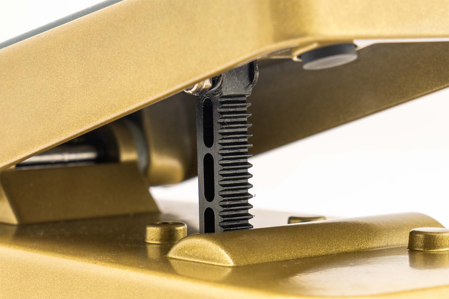 ナイロン・ピボット・ブッシングとラック・アンド・ピニオン技術を採用することにより、足元でよりスムースなヴォリュームスイープを生み出します。